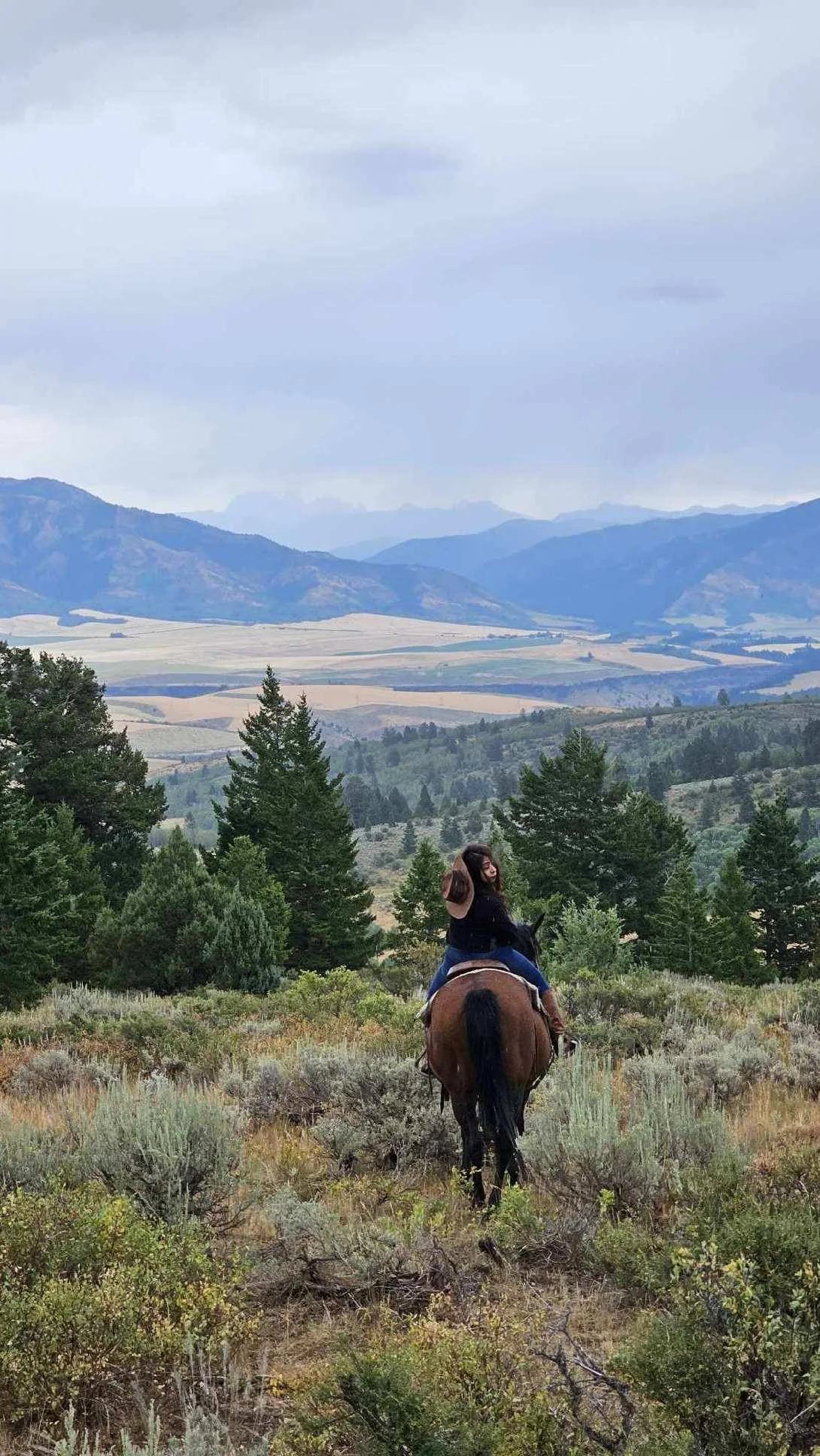 This trail ride will go up Blackburn Canyon, take a big loop around Horse Creek Peak on the north side of the ranch, then back down through the heavily wooded Chicken Creek Canyon.